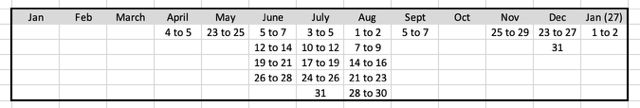 The dates indicated below indicate high capacity days throughout the year. If your dog is 25lbs or under and you are planning to board with us during these dates, it may be required that we utilize the most appropriate size kennel for your dog. Our Upper Deck Kennels are best suited for our smaller guests, allowing plenty of room with 2 to 3 exercise periods throughout the day. Our Indoor/outdoor runs are primarily reserved for large breeds, however, if available we strive to upgrade all accommodations.